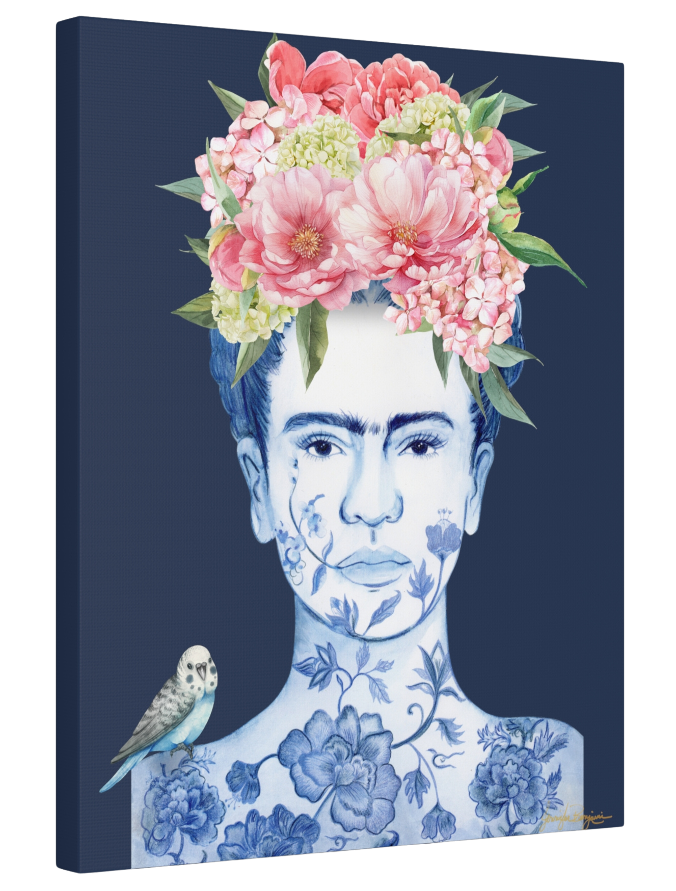 Introducing the 'Vessel' series with its debut portrait, an ethereal rendition of the iconic Frida Kahlo; my favorite muse. In this unique portrayal, Frida is reimagined as a blue and white porcelain bust, her head a blooming vessel overflowing with a vibrant bouquet that symbolizes the divine energy and creative spirit flowing through us. This piece reflects the philosophy of humans as porcelain vessels – delicate yet resilient, coveted, and timeless in their beauty. Frida stands as the embodiment of unapologetic self-expression and is the first of many women to be celebrated in this series for their extraordinary wisdom and authenticity.